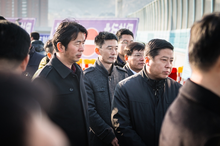 12月6日,二環(huán)南路快速路及隧道全線完工通車。省委常委、市委書記王文濤,市委副書記、市長楊魯豫現(xiàn)場察看了通車情況;市委常委、常務(wù)副市長孫曉剛和市政府秘書長李華賢參加活動。市市政公用事業(yè)局王繼東局長、修春海副局長介紹了工程建設(shè)情況,二環(huán)南路項目部主任楊峰、集團(tuán)董事長蔣永才,副總工程師、道橋一所所長鄭明萬,道橋三所所長王曉媚及部分設(shè)計、施工、管理人員一同見證了這一激動人心的時刻。
