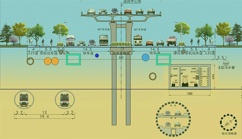 工業(yè)北路快速路西起全福立交橋,東至郭店立交,長13.6公里,標(biāo)準(zhǔn)段寬25.5米,雙向6車道。沿線共設(shè)置8對匝道,其中7對實現(xiàn)高架橋梁與地面道路的連接,在郭店立交設(shè)置一對專用匝道實現(xiàn)高快轉(zhuǎn)換。